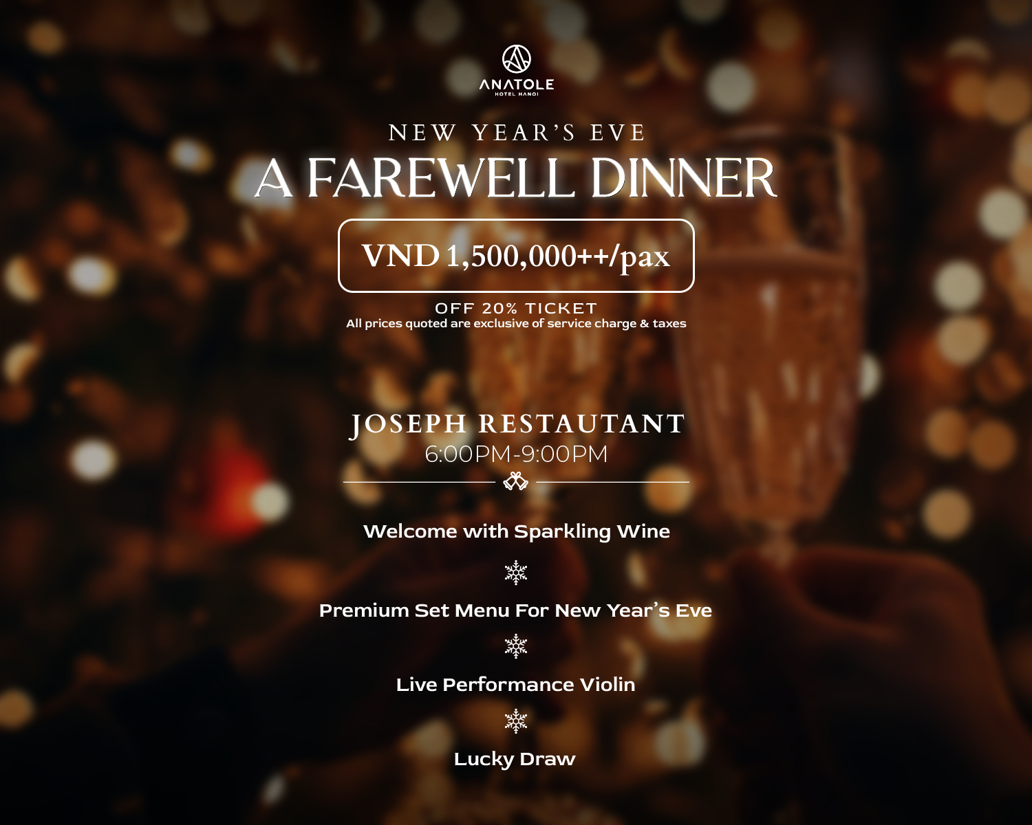 ✨ Special offer: only 2,400,000++ VND/person for Combo dinner + countdown party ticket + 01 complimentary drink