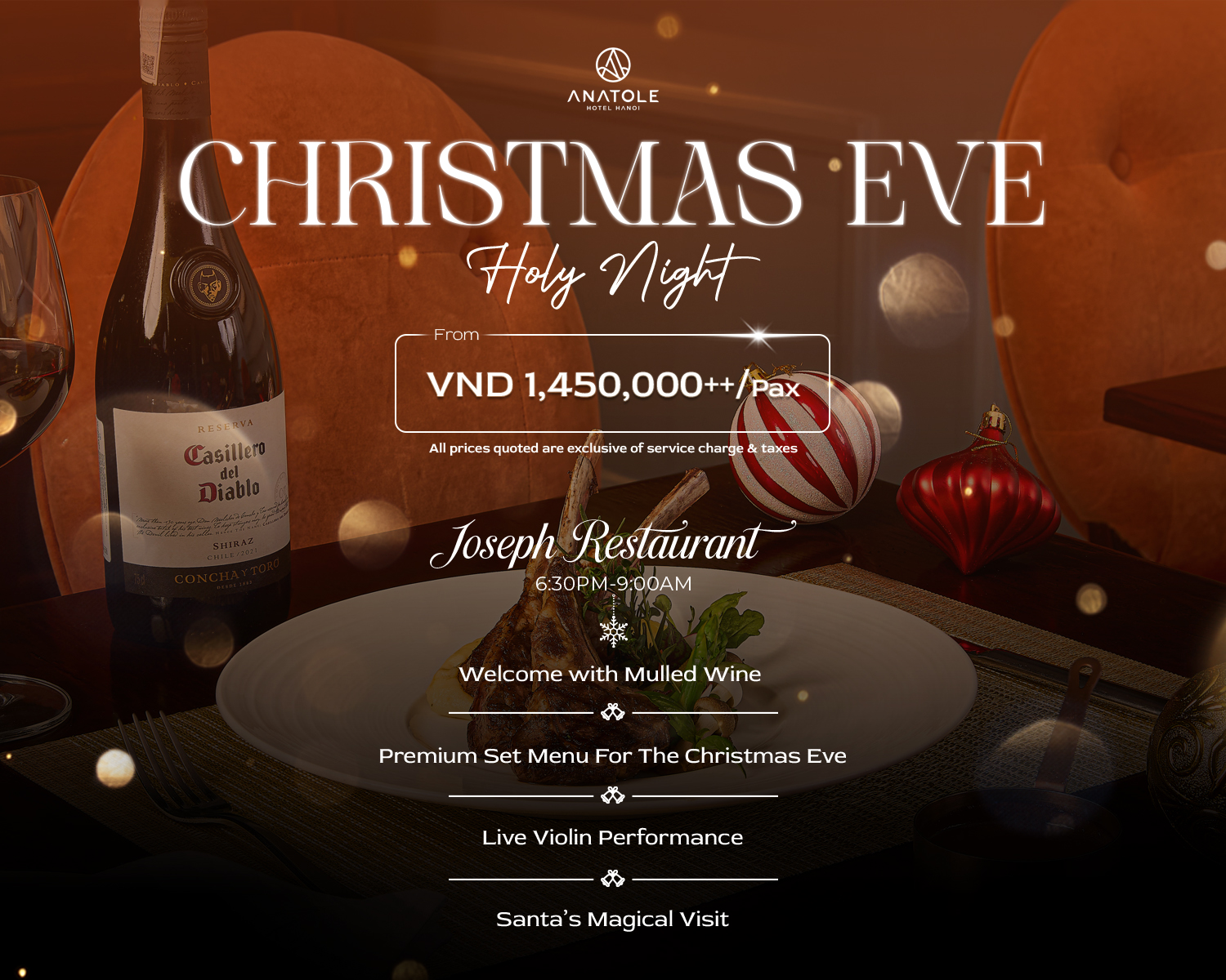 As soft Christmas melodies begin to fill the air and sparkling lights glow across every corner of the city, Joseph – Anatole Hotel Hanoi warmly invites you and your loved ones to immerse yourselves in the most enchanting Christmas Dinner of the year.